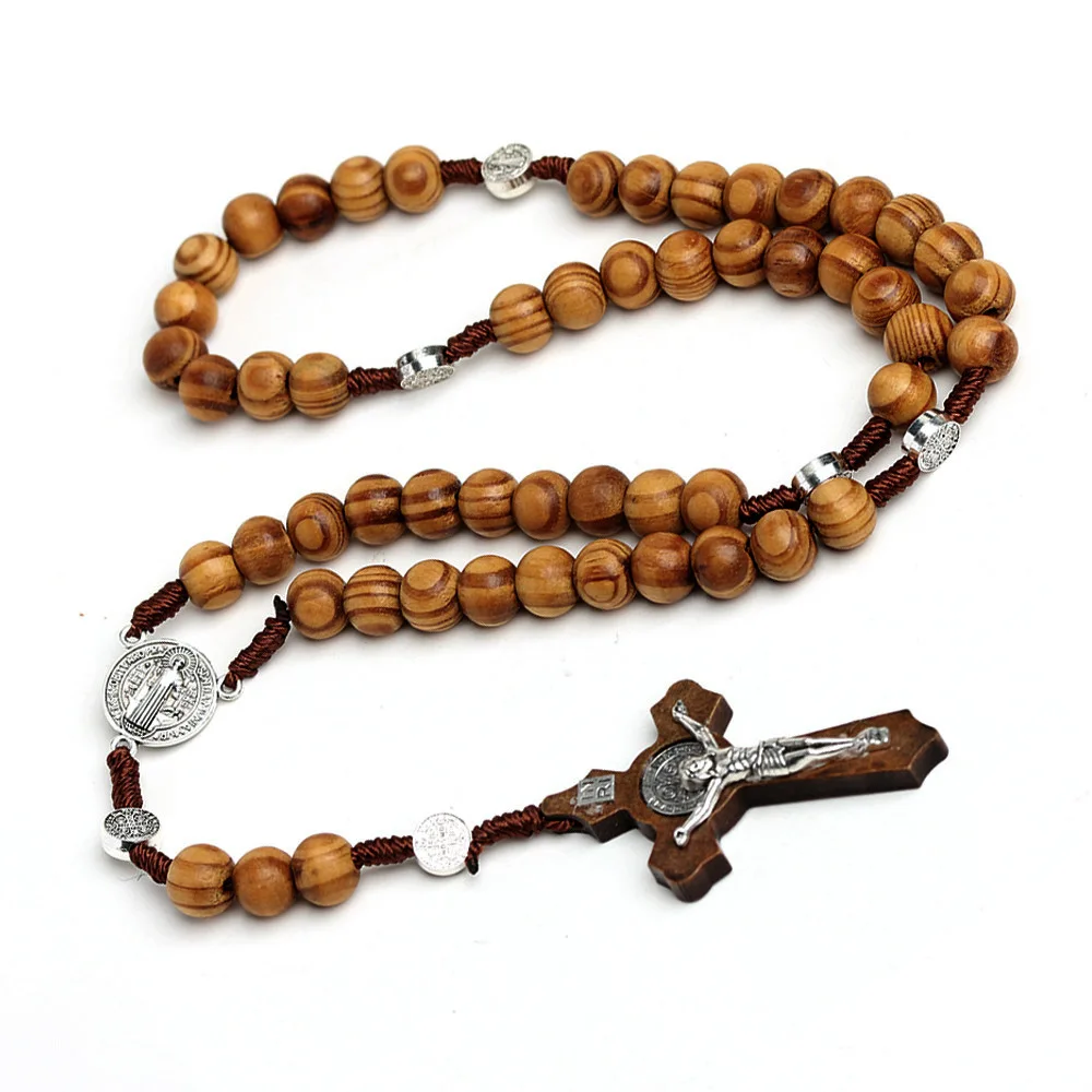 Portez le Collier Chapelet Bois motif Christ au quotidien