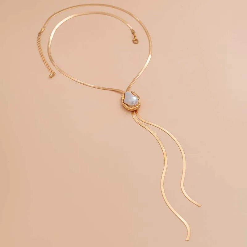 Confectionné en alliage de zinc, le collier en Y doré avec pierre est non seulement stylé mais aussi durable. La robustesse de son matériau assure une longévité certaine, et sa finition dorée ajoute une touche de luxe à votre collection de bijoux.
