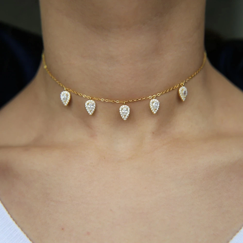 Le collier doré motif goutte avec pierres, un symbole intemporel