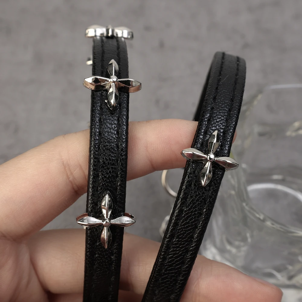 Fabriqué à partir de matériaux de qualité, le Collier Ras de Cou motif croix multiples incarne l’harmonie entre robustesse et finesse. Le cuir utilisé confère au collier une durabilité sans compromis tout en assurant un confort optimal.
