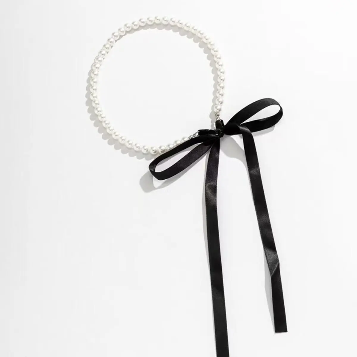 Un choix raffiné avec le Collier Ras du cou perlé Nœud tissu